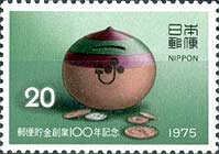 郵政儲蓄作為一種重要的金融形式,在世界各國都受到高度重視,這一點在郵品上也得以體現。日本郵政儲蓄被譽為“第二財政預算”,居世界郵政金融第一,1975年,日本郵政特別發行了《郵政儲蓄百年》郵票一套一枚(圖2),面值20日元,主圖是一個擬人化、微笑著的儲蓄罐和幾枚硬幣;巴西郵政1989年發行了《國際和國內郵政業務》郵票一套四枚,其中也包含一枚郵政儲蓄內容的郵票。
